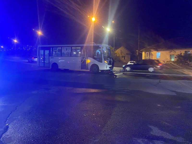 Мопедист вылетел на встречку и въехал на скорости в пассажирский автобус маршрута № 7 в районе Баляева, 56 во Владивостоке, сообщили