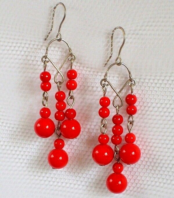 Серьги из иммитированного коралла (говлит) и авторский ажур из нейзильбера.