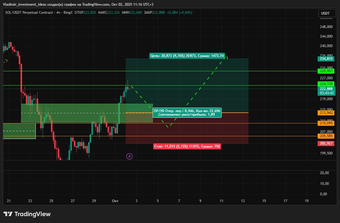 #SOL вход лимиткками на лонг, не более на все 2х % стоп закрытие 4х часовой свечи ниже уровня указанного стопа