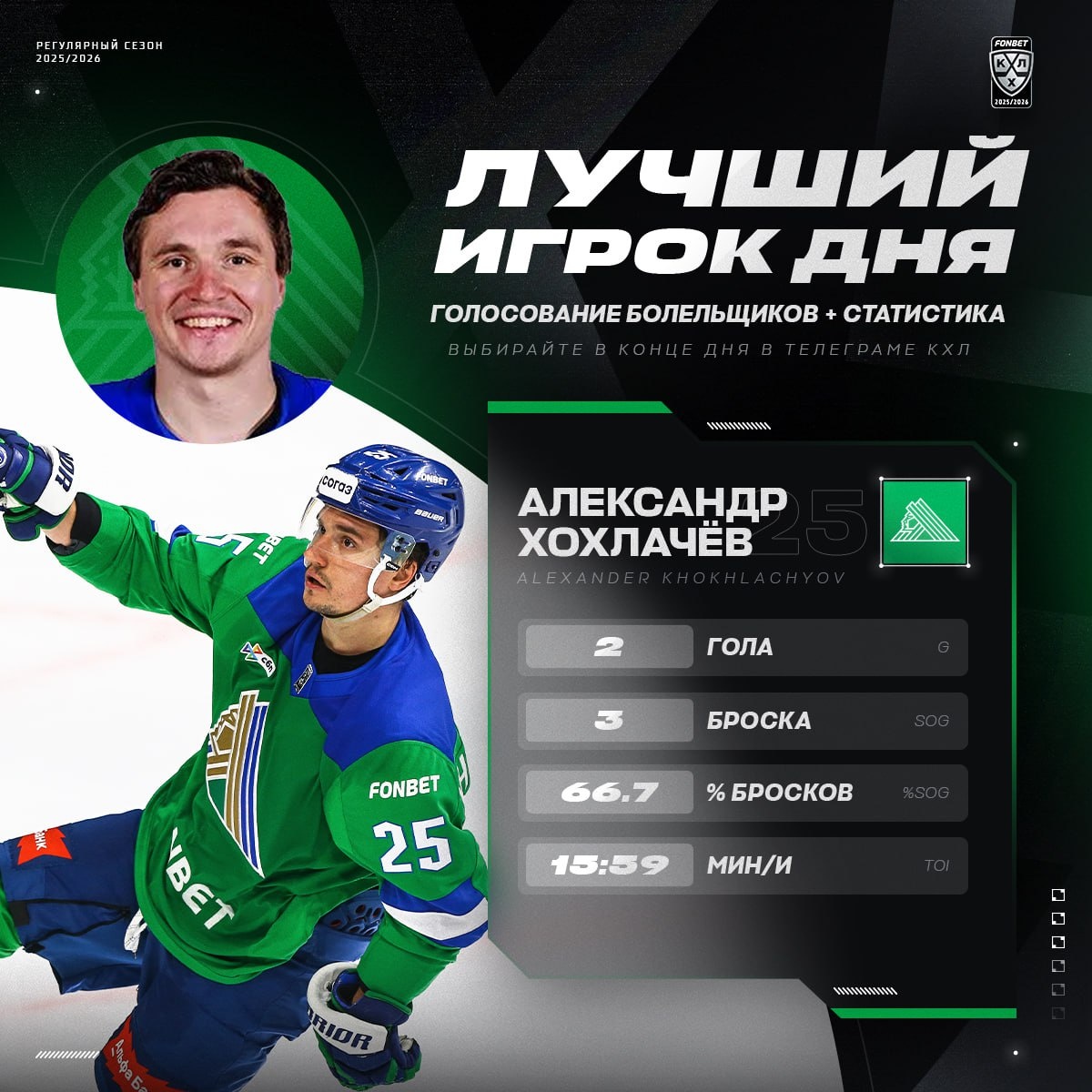 💚 Александр Хохлачёв на пробном контракте, но он уже принес результат «Салавату Юлаеву», сделав первый дубль за три сезона