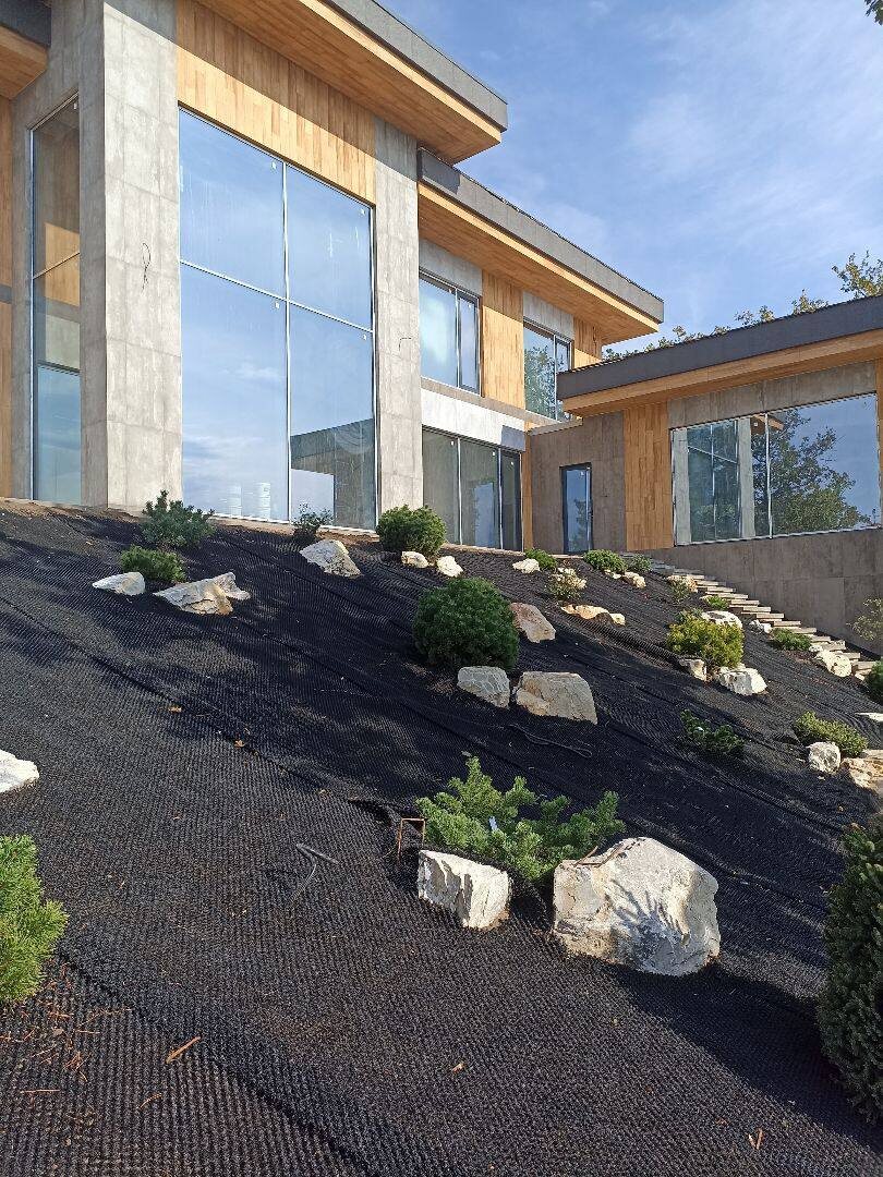 Представьте себе участок на склоне. Вид шикарный, но каждый сильный дождь смывает плодородный слой, оставляя борозды и рискуя превратить вашу мечту о красивом ландшафте в кошмар. Один из наших клиентов столкнулся с такой проблемой. Мы предложили ему элегантное и долговечное решение — геомат KMat L от TEGOLA. Работы почти завершены, и мы готовы показать, как он работает. Закрепить склон только травой — часто бесполезно. Семена смывает первым же ливнем. Бетонные плиты или габионы — дорого, сложно и неэкологично, выглядит как «чужеродный» элемент в природе. Нужно было решение, которое: И мы его предложили. По сути, это объемный мат из прочных полипропиленовых «нитей», хаотично сплавленных между собой. Выглядит как мочалка или губка. Его магия в трехмерной структуре. 1. Мы расстилаем этот «ковер» по склону. 2. Он идеально повторяет каждый изгиб и ямку, ложась без зазоров. 3. В его ячейки мы засыпаем грунт с семенами. 4. Вуаля! Мат мгновенно фиксирует почву, не давая воде ее вымыть. Семена