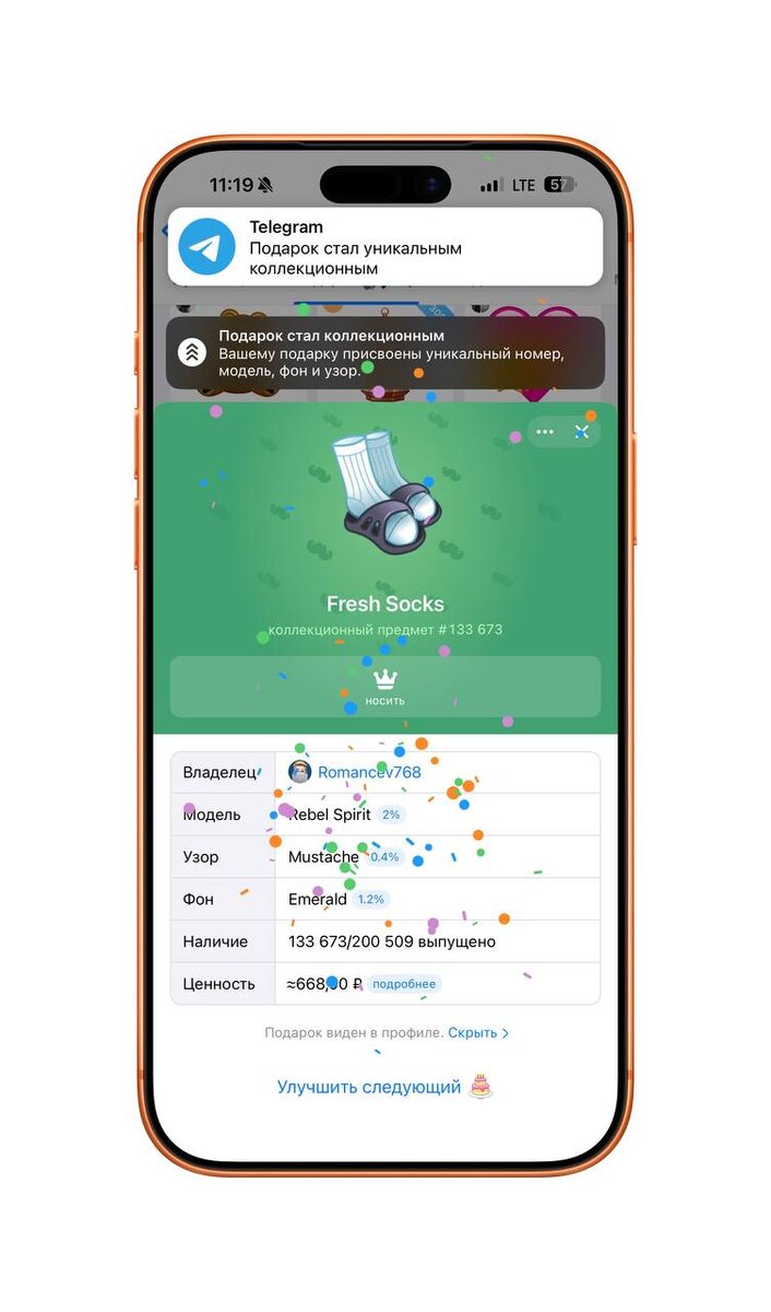 Сижу в Telegram, улучшаю подарки которые вы отправляете каналу