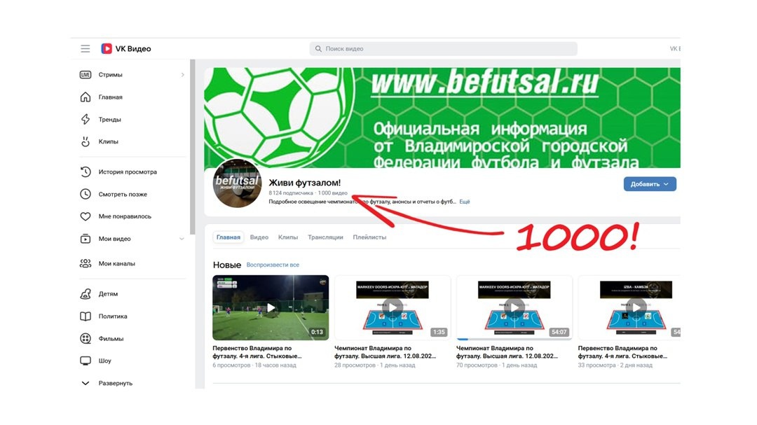 📹 Количество записей в разделе видео группы vkvideo.ru/@befutsal