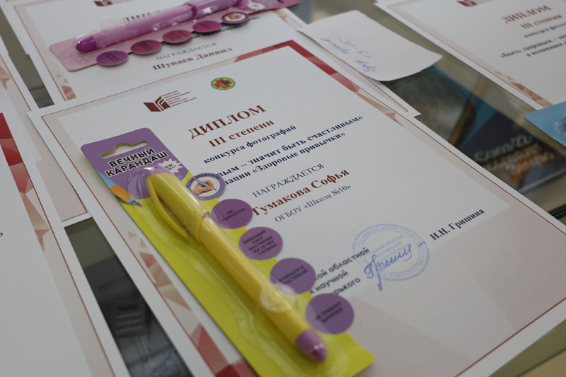 В библиотеке состоялось награждение участников конкурса фотографий «Быть здоровым – значит быть счастливым», проводившегося в рамках проекта «Формула здоровья». В начале встречи организаторы конкурса говорили о том, как нужно беречь свое здоровье, какие продукты необходимы для полноценного питания, почему важно заниматься физкультурой и спортом. Дети и подростки приняли участие в конкурсах «Танцуй с нами», «Самые полезные продукты» и рассказали, как они с пользой для здоровья проводят свободное время. С приветственным словом и пожеланиями к участникам конкурса обратилась Наталья Владимировна Зотова, начальник отдела межведомственного взаимодействия в сфере профилактики отделения профилактики наркологических расстройств Областного клинического наркологического диспансера. Победители конкурса были награждены дипломами и подарками. Все, кто участвовал в конкурсе, но не вошел в число призеров, получили сертификаты. Работы, присланные на конкурс, были показаны в ходе праздничной программы.