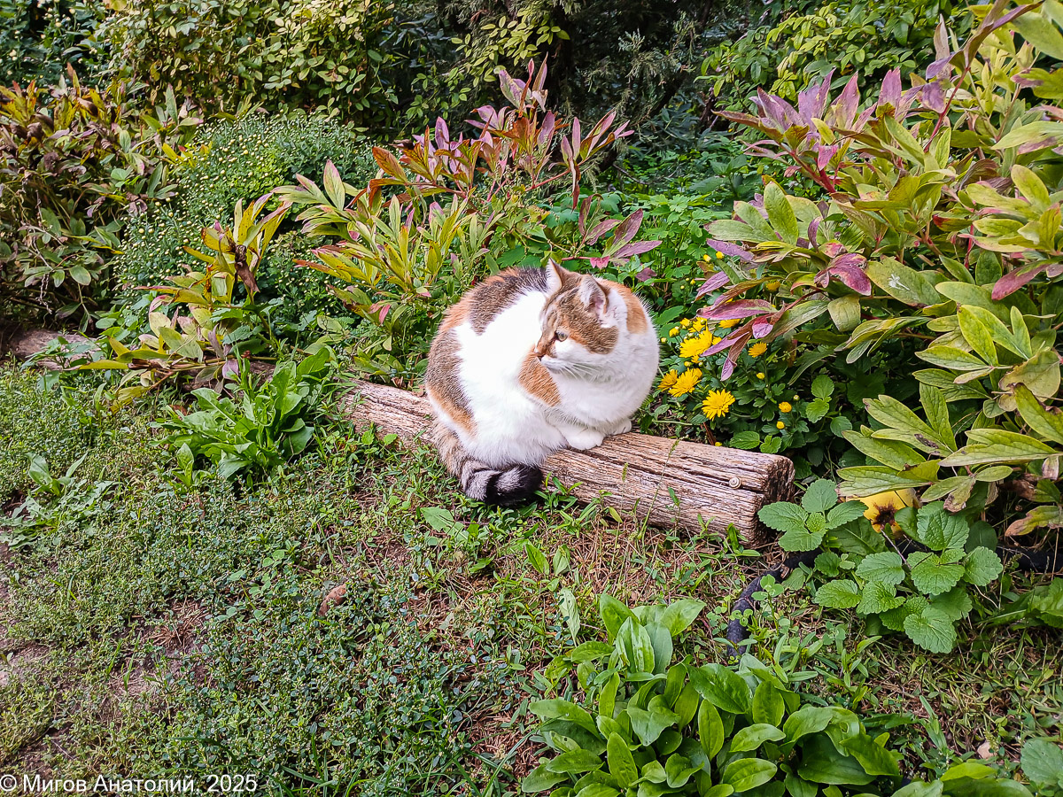 Только вышел утром в сад, а там уже Мамаша Че, сидит на брёвнышке, головой по сторонам вертит. На фото видно, что у нас начинают цвести хризантемы, кошка как раз между двумя такими кустами сидит. А ещё, если приглядеться, можно заметить жёлтое "яблоко" айвы в правой части снимка. Ночью у нас шёл дождь, совсем небольшой, однако он посбивал с дерева несколько плодов. Айва хотя и жёлтая уже, но ещё не совсем спелая, аромат есть, но пока слабый. Однако попробуем сварить из этих упавших плодов варенье, не знаю, что получится. А ещё я утром собрал с земли полтора десятка грецких орехов. Это уже третий год, как мы не собираем орехи. Болеют наши деревья, ни одного здорового ореха в предыдущие два года не было. Вот и в этот раз даже и не собирался смотреть в ту сторону. Однако, вижу, лежат на земле орехи - чистые, уже без кожуры, никаких признаков черноты. Взял один, сломал скорлупу, а там совершенно чистые ядра. Попробовал. Отличный орех, плотный, сладкий, каким был и раньше, до болезни. Един