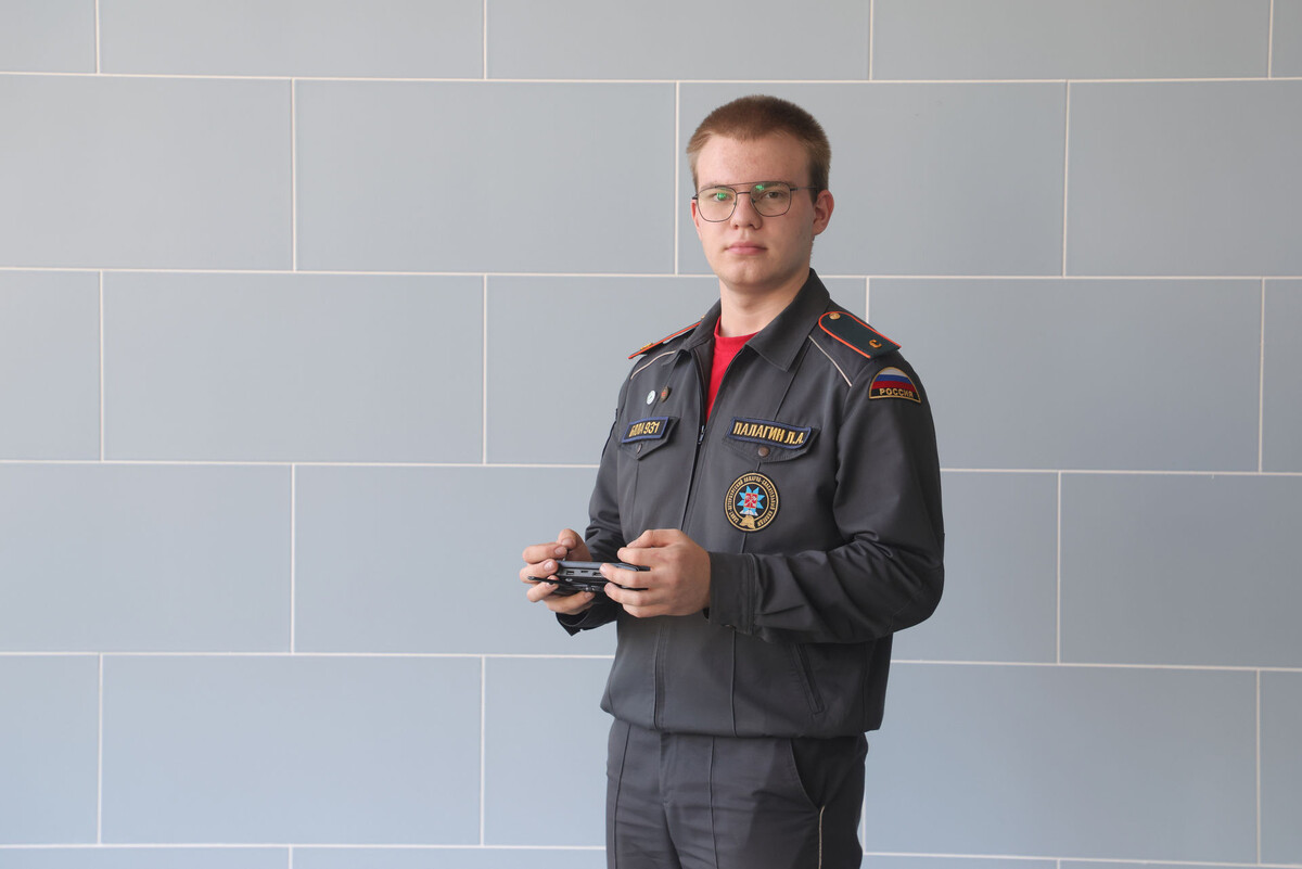 Студент Санкт-Петербургского пожарно-спасательного колледжа Леонид Палагин признается, что умеет не только пилотировать дроны, но и собирать, хотя управлять ими юноше нравится больше.