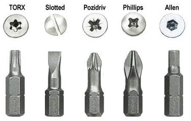 Перед вами пять самых распространённых шлицов и бит под них