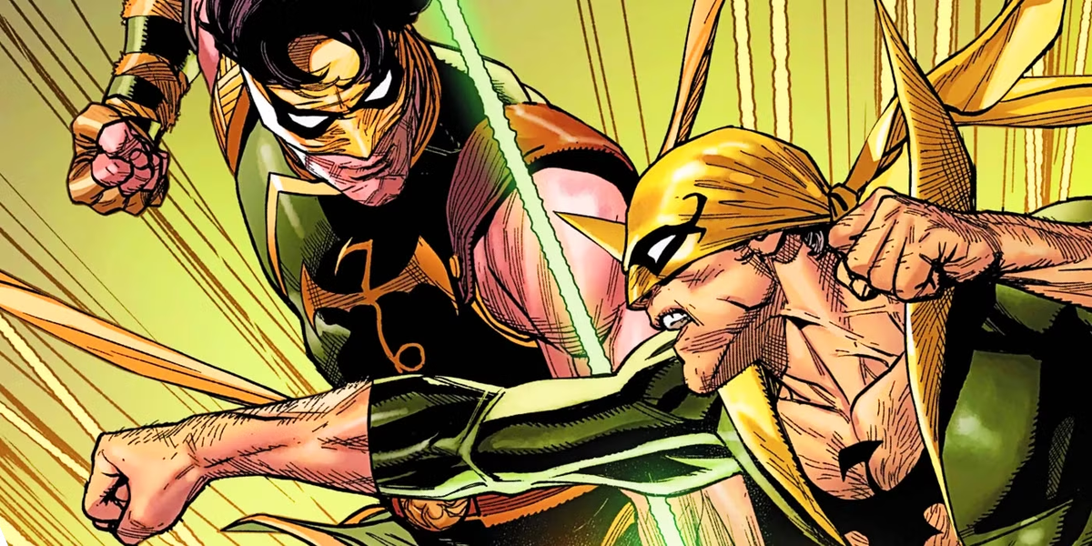 Это шестой том «Железного Кулака», первый выпуск (но предысторию можно прочесть в «Смерть Доктора Стрэнджа: Белая Лиса»). Здесь экс-Кулак, Дэнни Рэнд, сталкивается с небольшой группой демонов, когда к нему на помощь приходит некто в обновлённом скине Кулака. Этим некто оказывается Альберт Эйнштейн Лин Ли, попутно вспоминающий, как же он докатился до жизни такой. Защищая сельскую местность где-то в Южной Корее, наш Мастер Меча столкнулся с рейд-боссом — демоном Кумихо. Защищая Белую Лису (тоже вот должна в обозримом будущем подъехать в «Marvel Rivals»), Лин закрылся мечом... что, к удивлению публики, был нещадно погрызен, обслюнявлен и расколот. Пока Мастер говорил «окак», его киданули с огромной высоты. В себя Лин Ли пришёл у берегов К'унь-Луня, где пробудившийся дракон Шоу-Лао даровал юноше свою чи, сделав его тем самым новым Железным Кулаком. Не буду врать, до мотивации Шоу-Лао не дочитал. Но тем фактом, что новым Кулаком вновь стал иноземец, были недовольны многие местные кандидаты.