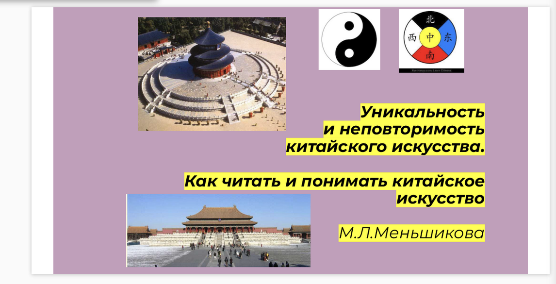 Недавно посетила онлайн лекцию, посвященную культуре Китая. Ее проводила сотрудник Эрмитажа с 50-летним стажем, специалист по китайской культуре Меньшикова Мария Львовна. Онлайн урок проводила школа Дарьи Мойнич, в которой периодически случаются разные онлайн уроки, посвященные странам Азии- в основном, как анонс более подробных, детальных курсов от этих же специалистов в этой школе.
