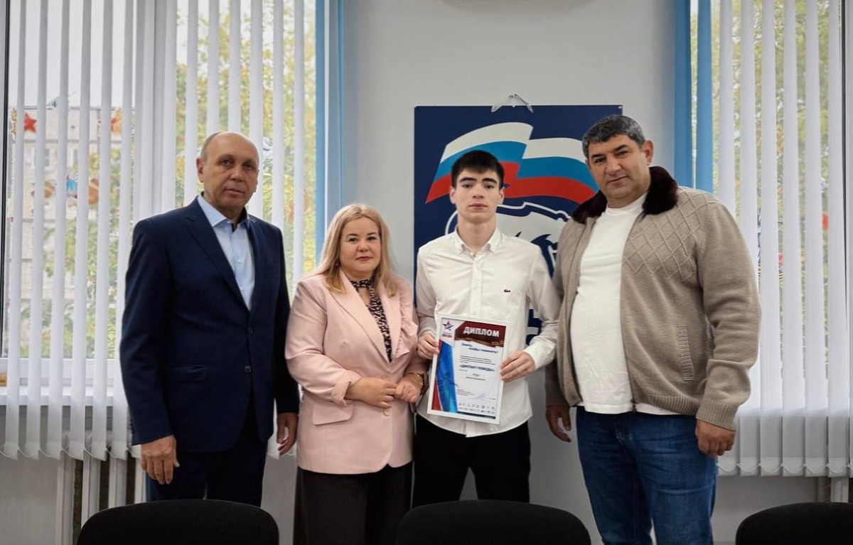 В общественной приемной местного отделения партии "Единая Россия" в Адыгейске состоялось награждение Дамира Хахука, ученика СОШ №1, ставшего
