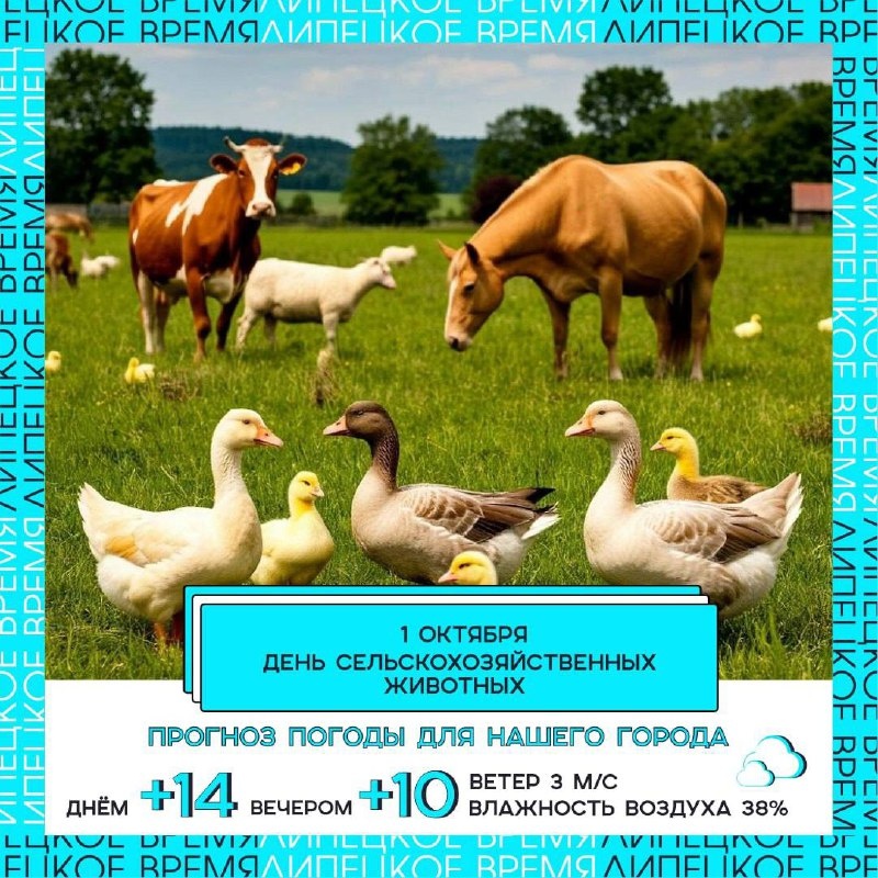 🐄🐖2 октября, отмечается Всемирный день сельскохозяйственных животных Дата выбрана не случайно — она приурочена ко дню рождения Махатмы Ганди. Он считал, что отношение к животным отражает уровень гуманности и развития общества. 📊 Липецкая область — один из лидеров в сфере животноводства в России. По данным Липецкстата на 1 октября 2024 года: поголовье крупного рогатого скота составляет 116 тысяч голов, в том числе 43,5 тысячи коров; свиней — около 840 тысяч голов; только за 9 месяцев 2024 года в регионе произведено 301,5 тыс. тонн мяса и 246,1 тыс. тонн молока. Всемирный день сельскохозяйственных животных — повод вспомнить, что именно от них зависит продовольственная безопасность, рабочие места для тысяч липчан и качество продуктов, которые мы видим на столе каждый день. А вы когда-нибудь бывали на ферме? 🐓🥛 ☀️Погода в Липецке: до +14 днем и без осадков.