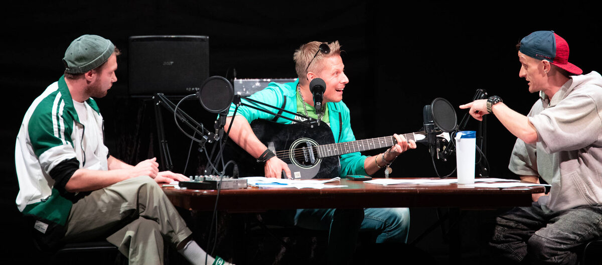 И чтобы как-то заполнить мучительный час, они завели вечный спор: что хорошего или плохого можно сказать о Ленинском районе. По воле жребия, «защитником» стал циничный ведущий Слава (Антон Парамонов), а миссия «обвинителя» выпала на долю добряка – спортивного комментатора Вити (Константин Галушин).