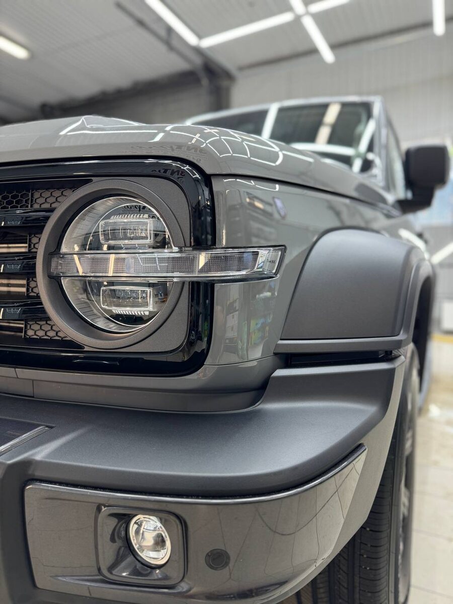 Полная броня для легенды: новенький TANK 300 в прозрачной защите TANK 300 — один из самых популярных автомобилей в России, и такая легенда заслуживает максимальной защиты. В этом проекте мы упаковали в броню не часть, а весь кузов этого внедорожника, чтобы его безупречная внешность сохранилась на долгие годы, несмотря на любые дорожные вызовы. Что было сделано: ✅ Полная оклейка всего кузова прозрачной полиуретановой пленкой. ✅ Максимальная толщина 190 мкм для превосходной стойкости к сколам и царапинам. ✅ Гидрофобное покрытие — грязь и вода скатываются с поверхности, облегчая уход. ✅ Официальная гарантия от производителя пленки — 5 лет. Почему это идеальное решение для TANK 300? · Невидимая защита: Пленка полностью прозрачна и не искажает цвет, подчеркивая заводской дизайн. · Прочность 190 мкм: Эта толщина обеспечивает уверенную защиту от песка, гравия, веток и мелких аварийных ситуаций. · Гидрофобный эффект: Внедорожник будет легче мыть, а на скорости кузов дольше остается чистым.