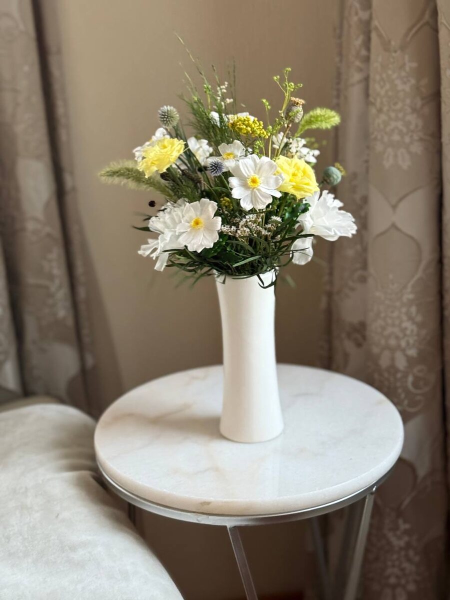 ⚜️Солнечный букетик из циний, роз и эустомы «Sunlit». ⚜️Цена: 13700₽ (ваза входит в стоимость) ⚜️Доставка по Москве в пределах МКАД 600₽, возможен самовывоз м. Сходненская. ⚜️Заказы принимаем на WhatsApp https://wa.me/79261344455 или по телефону 89264344455