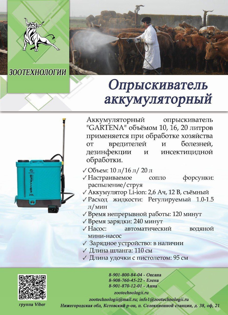 Здравствуйте!👋 Мы хотим предложить Вашему вниманию опрыскиватели аккумуляторные. ❓ Разберёмся подробнее. Аккумуляторные опрыскиватели — это устройства, которые используются для распыления жидких растворов на животных или поверхности. Чтобы заказать данный товар, обратитесь к любому из наших менеджеров по номеру: Оксана: 8-901-800-84-04 Елена : 8-908-760-45-22 Анна: 8-901-870-12-01 Юлия: 8-902-787-47-33 💌Либо, напишите нам на электронную почту: zootechnologii@mail.ru Присоединитесь к нашему сообществу ВКонтакте😸 #опрыскиватель #опрыскиватели_аккумуляторные