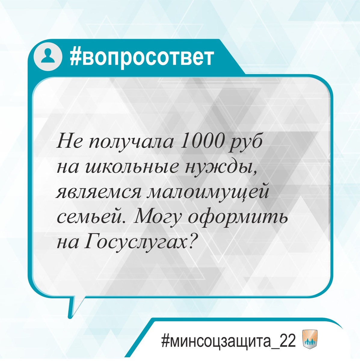 Не получала 1000 руб. на школьные нужды, являемся малоимущей семьей. Могу оформить на Госуслугах? Здравствуйте! Нет, на портале госуслуг данную выплату оформить нельзя. В случае, если беззаявительно выплата не была предоставлена, Вы можете обратиться в МФЦ в течение текущего учебного года. Ежегодная выплата предоставляется в беззаявительном порядке гражданам, являющимся получателями ежемесячного пособия на ребенка в соответствии с законом Алтайского края от 15.10.2004 N 34-ЗС "О ежемесячном пособии на ребенка" по состоянию на 1 сентября очередного учебного года. *Вопрос поступил через систему "Инцидент менеджмент" #Алтайскийкрай #Минсоцзащита_22 #Вопросответ 📁Минсоцзащита в MAX ⌚Минсоцзащита в VK