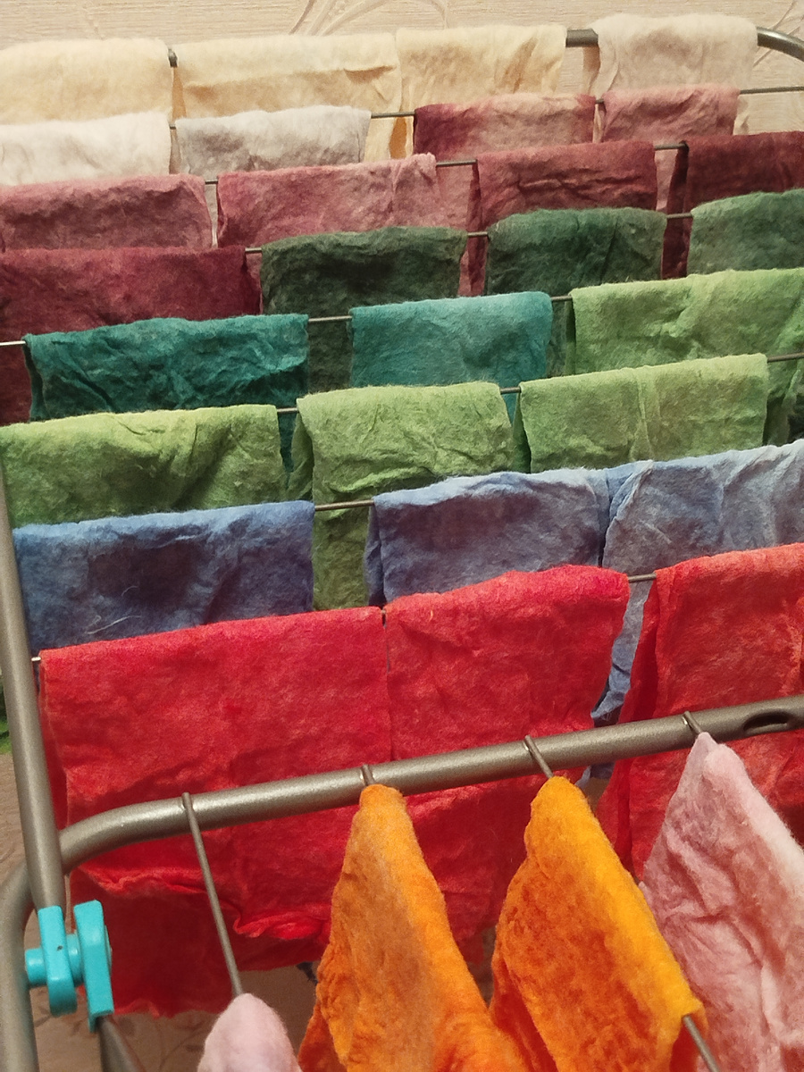 Всем доброго дня. Конечно, любое рукоделие начинается с идеи, а после с поиска материалов. Изготовление ватной игрушки, - не исключение. Давайте сегодня поговорим про окрашивание ваты. Этот этап вовсе необязательный. Можно купить уже окрашенную вату. Или сделать игрушку из белой, а потом расписать. Я такое тоже практикую. Но большее удовольствие мне доставляет работа с цветным материалом. А вот сам процесс покраски не люблю. Хотя в нем ничего сложного нет, нужно лишь время. Итак, красила я хлопковую и льняную вату. Красители выбирала те, которые предназначены для этих видов материалов. У меня краска Джинс. В небольшом количестве горячей воды развожу немного краски, буквально на кончике ножа. Интенсивность цвета будет зависеть от количества добавленной краски. Дальше уже в большем объеме смешиваю разведенный краситель, соль и теплую воду. И опускаю в этот раствор вату. Кипячу на небольшом огне минут 10-20, пока вода не станет прозрачной, а вата не напитает цвет. Что еще важно,