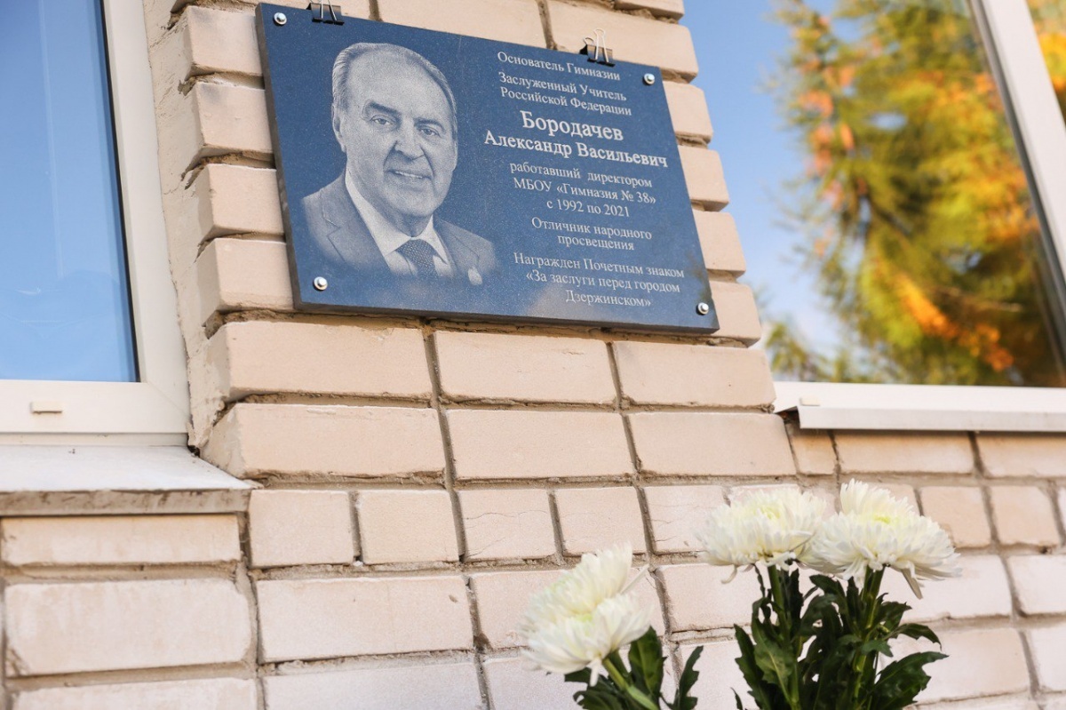 30 сентября в Дзержинске на стене гимназии № 38 открыли мемориальную доску в честь бывшего директора учебного заведения Александра Бородачева.