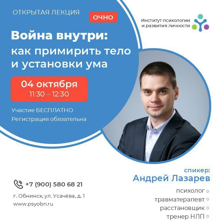 Институт психологии и развития личности приглашает на открытую лекцию "Война внутри: как примирить тело и установки ума"