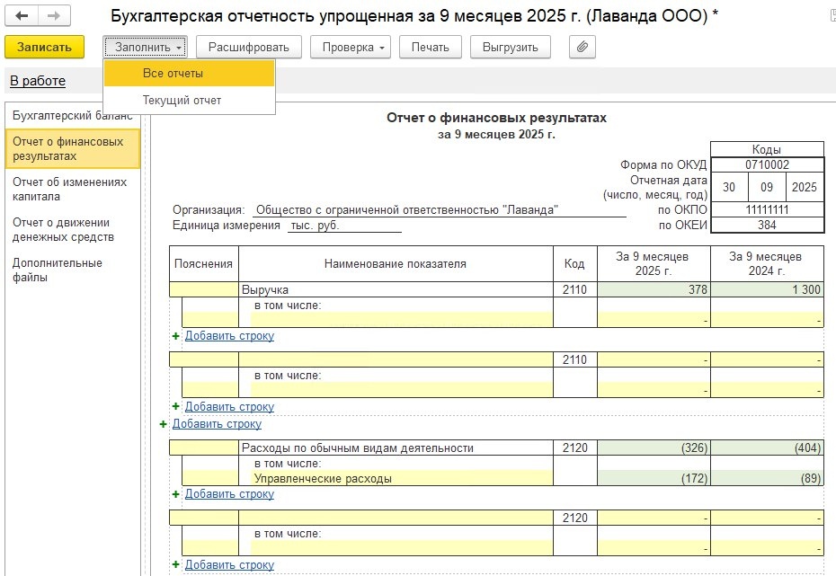 Автозаполнение упрощенной бухгалтерской отчетности в Бухгалтерии реализовано ✅