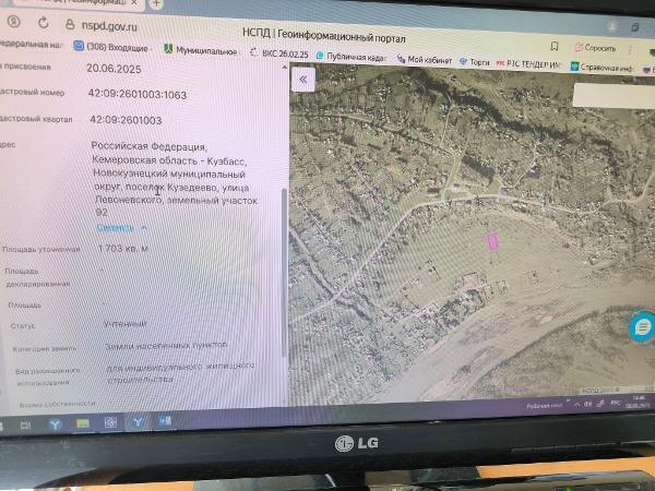 Название: Земельный участок с кадастровым номером 42:09:2601003:1063 площадь 1703 кв