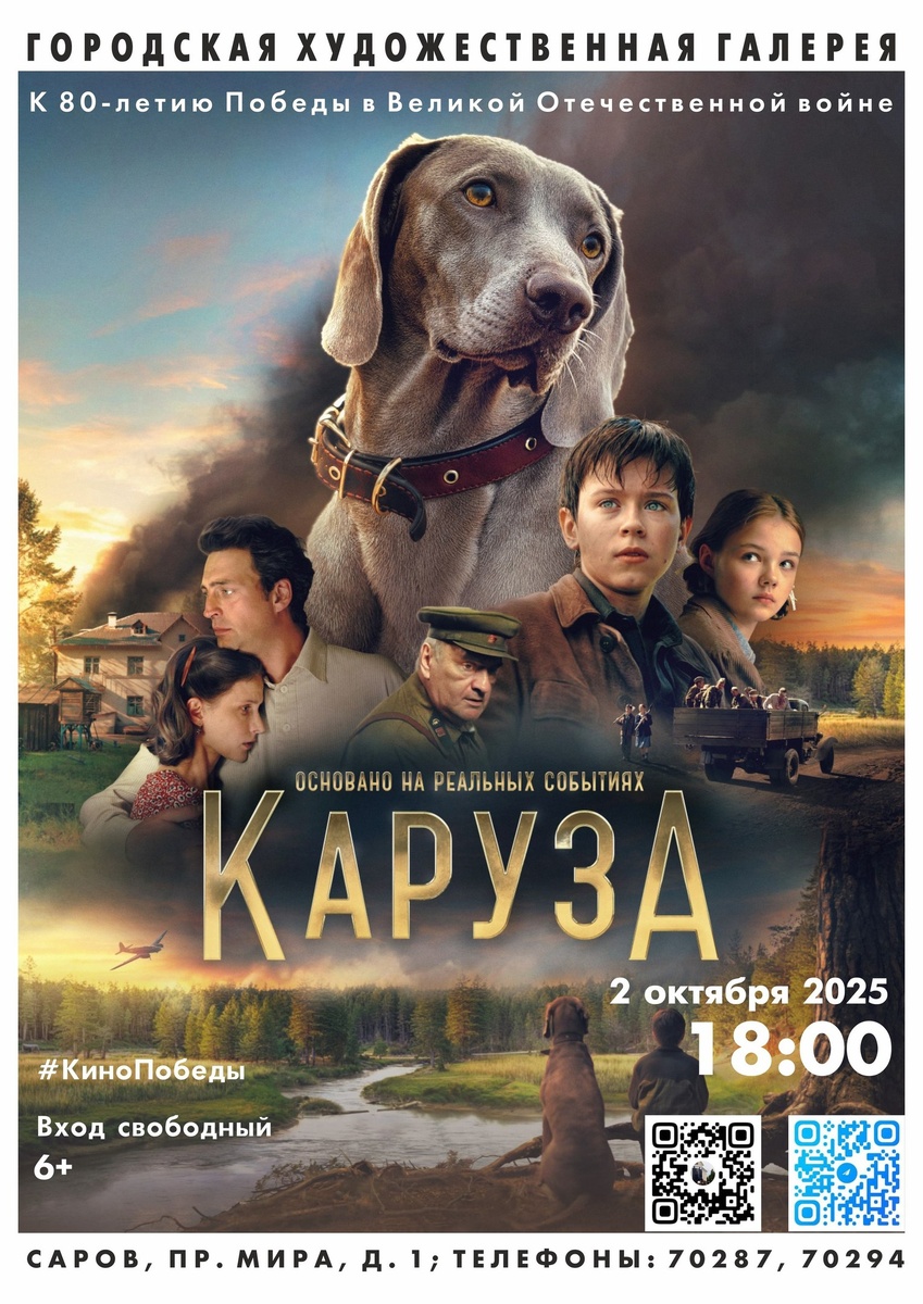 ↗ Художественная галерея приглашает саровчан на кинопоказ Сегодня в 18:00 в рамках программы #КиноПобеды покажут художественный фильм "Каруза". Фильм основан на реальных событиях и рассказывает о собаке, спасавшей жителей блокадного Ленинграда во время Великой Отечественной войны. Вход свободный.