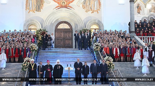 В торжественном мероприятии принял участие Президент Беларуси Александр Лукашенко. В своем выступлении перед прихожанами он отметил, что гражданский мир и согласие, неприятие любых форм враждебности на религиозной и этнической почве стали главными составляющими государственной политики Беларуси.