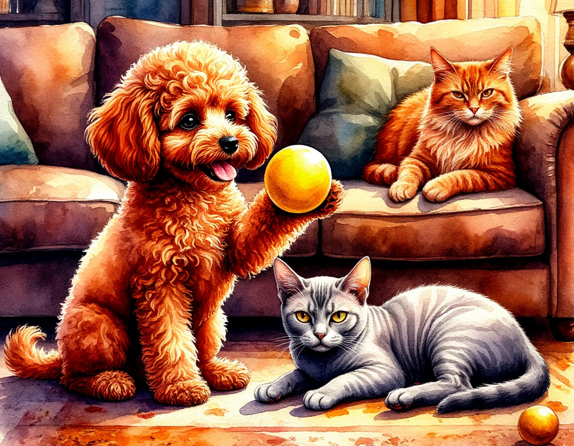 У каждого есть своя любимая вещь. Для кого-то — чашка, которая согревает в любое утро. Для кого-то — книга, перечитанная десятки раз. А для щенка по имени Буся таким «сокровищем» был маленький жёлтый мячик. Только с ним игры были по-настоящему весёлыми. Вечер был тихим. Хозяйка читала книгу, уютно устроившись с пледом, Грета дремала на кресле, величественно свесив лапу, а Гектор мирно потягивался на ковре. И тут тишину разорвал возмущённый визг: — Где мой мячик?! — Буся носилась по комнате, как вихрь. Она заглядывала в углы, нюхала ковёр, подпрыгивала и выглядела так, будто ищет пропавший клад. — Он тут был! Он мой! Грета приоткрыла глаза и лениво зевнула: — Игрушки имеют свойство исчезать, если их бросать куда попало. — Он не «куда попало», он здесь был! — Буся метнулась к креслу и заглянула под него. — Его украли! Гектор медленно поднял голову, моргнул и философски произнёс: — Вещи приходят и уходят. — Это не вещи! Это друг! — возмутилась Буся и плюхнулась носом в плед. Грета посмот