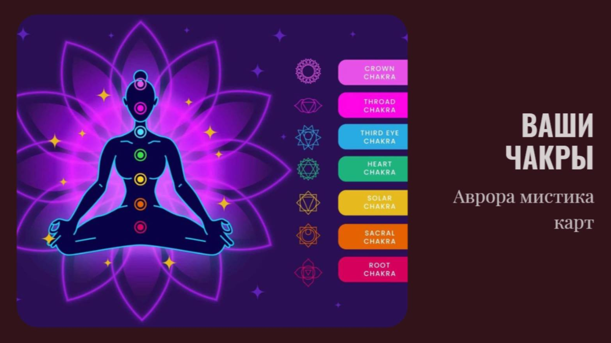 00:29 Введение и состояние чакр • Обсуждение состояния чакр: красной, оранжевой, жёлтой, зелёной, голубой, синей и фиолетовой. • Влияние на чакры: полоса неудач, депрессия, нехватка энергии в жёлтой чакре. 01:58 Анализ чакр • Красная чакра: ограничение, но попытка расширения границ. • Оранжевая чакра: преодоление трудностей. • Жёлтая чакра: потеря энергии, пробой. • Зелёная чакра: нереализация, потеря женственности. • Голубая чакра: щедрость, ораторство. • Синяя чакра: обнуление, закрытие третьего глаза. • Фиолетовая чакра: затруднённая связь с высшими силами. 04:48 Магическое влияние • Разрушение красной чакры, защита границ. • Агрессия на оранжевую чакру, трудности из-за агрессии. • Борьба жёлтой чакры, защита от слива энергии. • Личные потери зелёной чакры. • Разлад синей чакры, внешнее влияние. • Достаток энергии в фиолетовой чакре. 07:26 Самовосстановление и магическое влияние • Самовосстановление чакр приостановлено. • Горячие энергии, магическое влияние. • Слабая защита ангела-