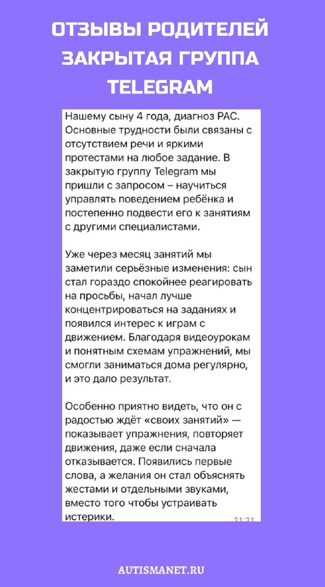 🌟 Старт нового курса занятий в закрытой группе Telegram! 🌟 Друзья, уже 1 ноября начинается новый курс занятий по программе НЕЙРО-СЕНСОРНОЙ АФК для детей от 3 до 7 лет в закрытой группе Telegram. 📌 Мест остаётся всё меньше — не откладывайте запись! 💜 Почему родители выбирают закрытую группу? ✔️ Удобный формат: заниматься можно в любое время и в комфортном темпе. ✔️ Пошаговые видеоуроки и схемы упражнений — всё максимально понятно и доступно. ✔️ Проверенные практики, которые помогают скорректировать поведение, снизить протесты и улучшить внимание ребёнка. ✔️ Возможность возвращаться к занятиям и повторять упражнения столько раз, сколько нужно. ✔️ Поддержка в чате — родители не остаются один на один со сложностями. ✨ Уже многие семьи отмечают: ребёнок становится спокойнее, охотнее выполняет задания, появляется интерес к движению и первые шаги в речи! 📲 Записывайтесь прямо сейчас, пока есть места, и начните путь к заметным результатам для вашего ребёнка. 📞 WhatsApp для записи: