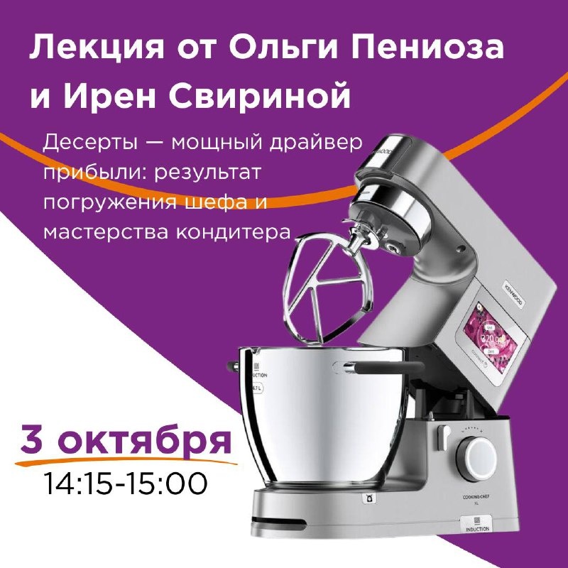 3 октября в 14:15 в рамках уникального гастрономического шоу приходите на лекцию с шеф-поваром Ольгой Пениозой и бренд-шефом Kenwood Ирен Свириной: