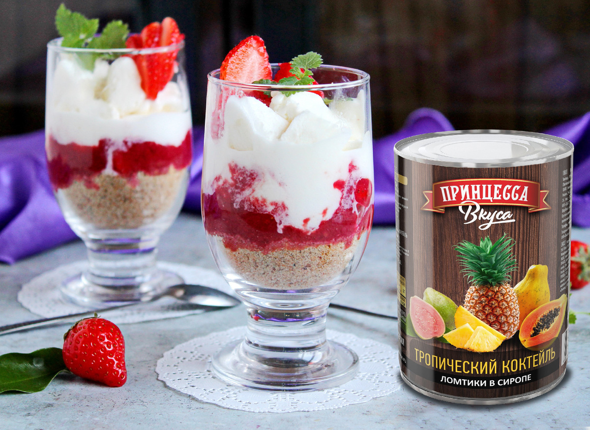 Йогурт натуральный - 250 г Фрукты или ягоды - 80 г Мед или сироп - 80 г Печенье шоколадное - 4 шт. Мой ребенок относится к тем привередам, которые категорически не любят употреблять фрукты или ягоды в чистом виде и просят приготовить с ними разнообразные десерты. Каждый раз, чтобы накормить свежими витаминами свое чадо, мне приходится изобретать что-нибудь новенькое и аппетитное. В таких случаях простые и быстрые слоеные десерты прекрасно меня выручают. Десерт, который я хочу предложить вашему вниманию, полезный, вкусный и к тому же очень прост в приготовлении. Для приготовления слоеного десерта из йогурта с печеньем подготовьте продукты по списку. Вы можете использовать любые фрукты или ягоды по вашему вкусу, я же взяла сезонные персики и домашний виноград. Желательно, чтобы фрукты и йогурт были хорошо охлажденными, так десерт получится еще вкуснее! Наломайте печенье на небольшие кусочки и разложите в прозрачные бокалы или креманки. Сверху выложите небольшие кусочки фруктов или целые