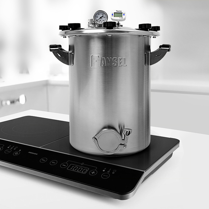 - Уплотнение крышки. Силиконовое кольцо надевается на горловину автоклава. При нагреве давление растёт, силикон и нержавеющая крышка плотно прижимаются — система становится герметичной. Материал уплотнения — обновлённый, более плотный и износостойкий силикон, специально переработанный для версии Fansel 3.