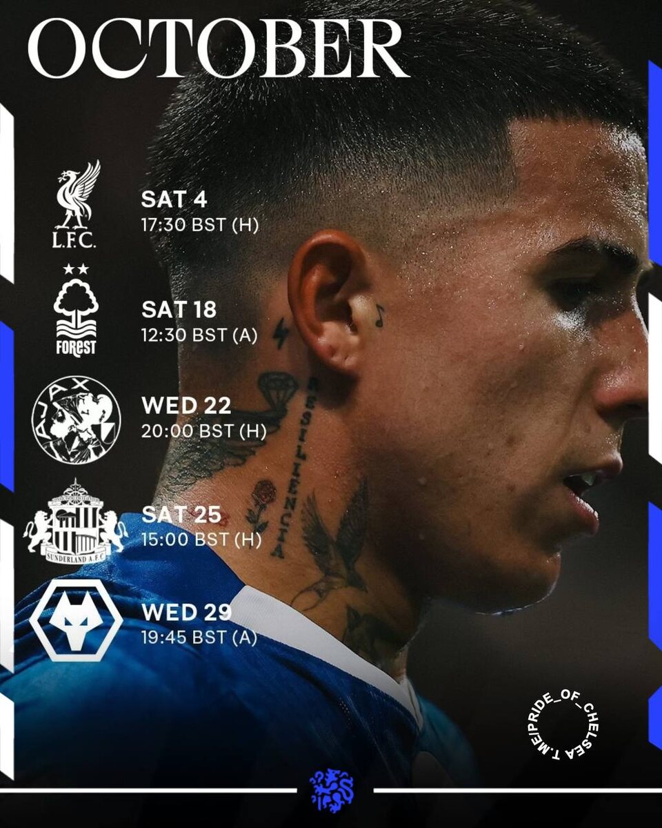 ⚽️ Расписание матчей «Челси» в октябре!