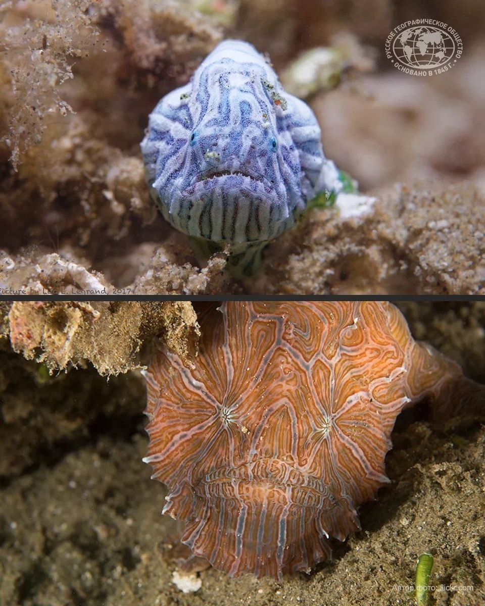 Обитает у берегов Индонезии 🔵Её обнаружили в XXI веке, а вид описали только в 2009 году 🔵В отличие от других рыб-удильщиков, у неё нет иллиция — «удочки» 🔵У каждой рыбы свой уникальный психоделический узор 🔵Передвигается прыжками, отталкиваясь от дна грудными плавниками 🔵Изогнут хвост, поэтому она не может двигаться прямо, только из стороны в сторону 🔵«Лицо» приплюснуто, но умеет вытягивать голову и пасть, обретая более вытянутую форму 🔵Кожа покрыта особой слизью, которая защищает от царапин 🔵Такая расцветка служит отличной маскировкой от хищников, которым придётся переворачивать каждый камень, чтобы найти рыбу #СредаРГО — каждую среду мы рассказываем об удивительных животных и растениях нашей страны и мира