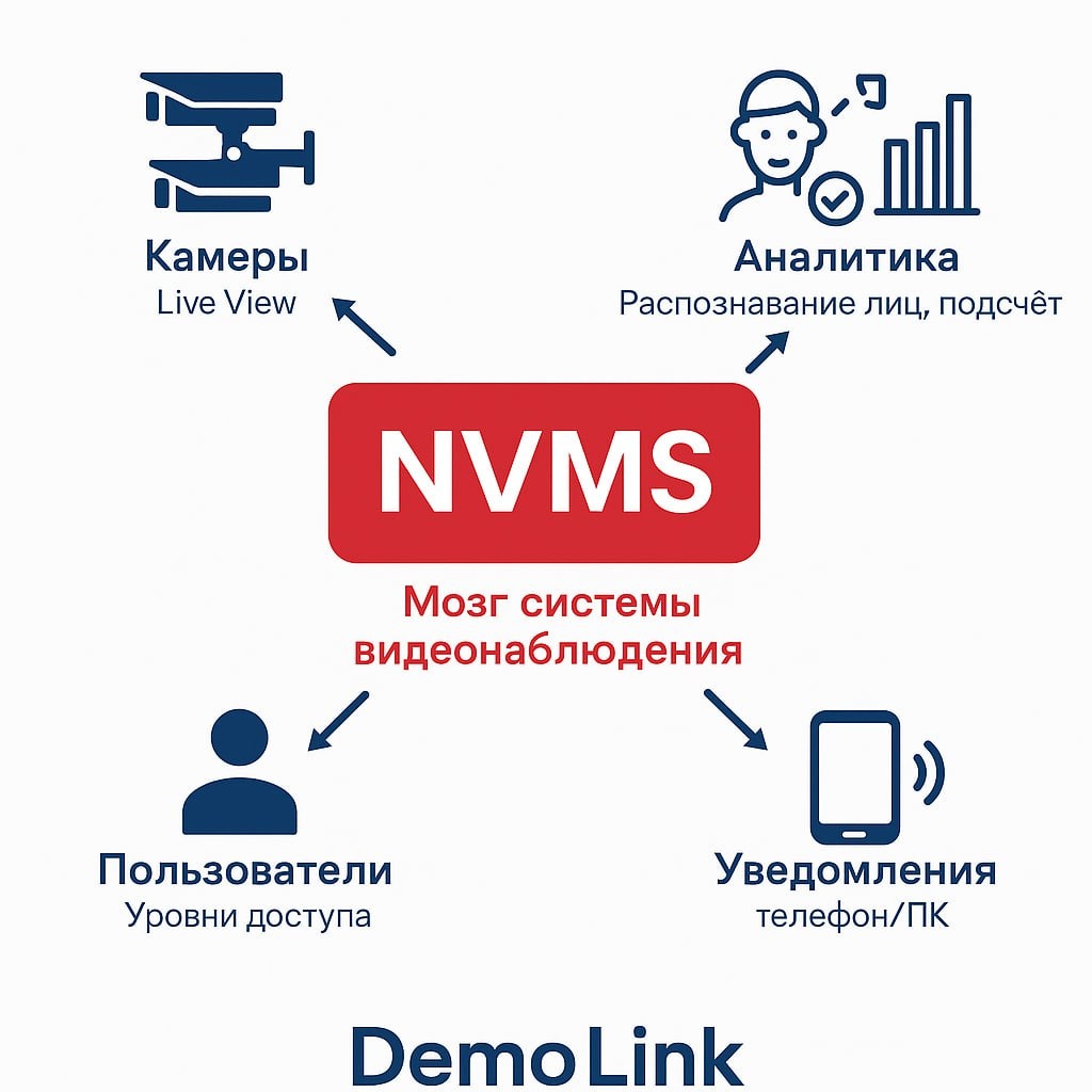 📢 Знакомство с NVMS Перед тем как погрузиться в пошаговые разборы, давайте разберёмся, что же такое NVMS и зачем оно нужно. 🔹 NVMS (Network Video Management System) — это программное обеспечение для управления системами видеонаблюдения. Оно объединяет все камеры, регистраторы и серверы в единую платформу, позволяя: Просматривать видео в реальном времени (Live View). Записывать и хранить архив. Настраивать пользователей и уровни доступа. Подключать интеллектуальные модули: распознавание лиц, подсчёт посетителей, контроль зон. Получать уведомления о тревогах прямо на телефон или компьютер. 💡 Преимущество NVMS в том, что всё управление системой находится в одном окне: от простой настройки камеры до аналитики и построения тепловых карт. ⚡️ Проще говоря: NVMS — это «мозг» всей системы видеонаблюдения DemoLink. Камеры снимают, а NVMS управляет, хранит и анализирует данные. С этого поста мы начинаем серию #ГидDemoLink, где шаг за шагом разберём установку, настройки безопасности и