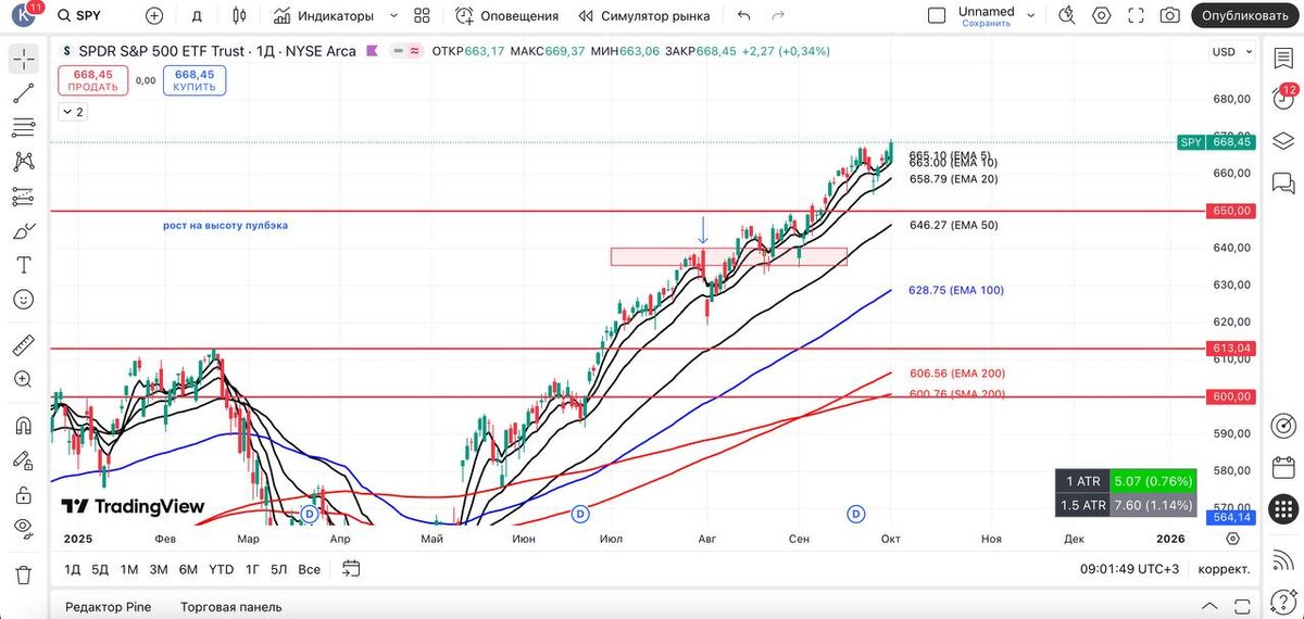 ВЫВОД : рынок моментально откуплен, закрылись сильными свечами покупателей, и $SPY, $QQQ, $SMH обновили исторические максимумы, и в такие моменты происходит самый сильный «бычий» моментум = так что не удивлюсь сильному продолжению движения вверх. Также ротационные отрасли $DIA, $RSP, $RUT выглядят так, будто готовы к сквизу + широта рынка все еще консолидируется, нет эйфории и есть куда расти = ставка на ротационные отрасли, которые в 2025 г. пока что не показали какого-либо сильного движения. А вот представьте: кто-то торгует по новостям, и после шатдауна просто в панике сбрасывает позиции. А потом сидят и не понимают, почему так, почему рынок растет. Шатдаун ? Не, не слышал. Продолжаем нагружать портфель 😎 #spy #технический_анализ #америка #трейдинг_сша #фондовый_рынок #обзор #вывод #qqq #vix #smh