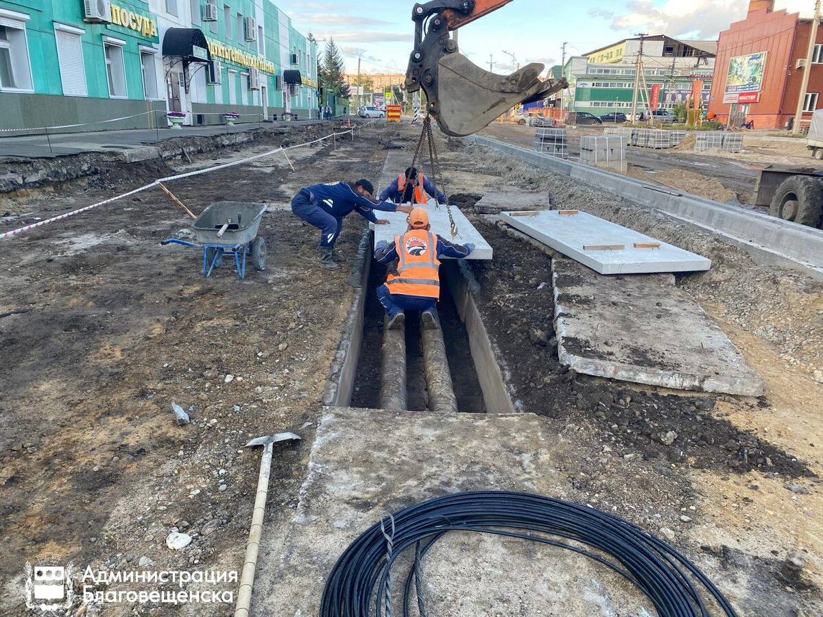Реконструкция ведется в рамках национального проекта "Инфраструктура для жизни". На участке от Заводской до Пролетарской готовят основание дороги, устанавливают бордюры, ремонтируют колодцы и обновляют систему ливневой канализации. Об этом сообщает администрация Благовещенска. Завершить работы планируют до 30 октября. Ранее подрядчик обновил отрезок от железнодорожного переезда до Заводской. Там полностью заменили дорожное полотно, нанесли разметку и установили знаки. По нацпроекту в этом году ремонт охватил и другие улицы Благовещенска: Горького, Октябрьскую, Краснофлотскую, Амурскую. Завершены работы на Ленина, Амурской и 50 лет Октября. Фото администрации Благовещенка Читать на сайте ТЕЛЕПОРТ.РФ Еще больше новостей в нашем телеграм-канале https://t.me/amurobl