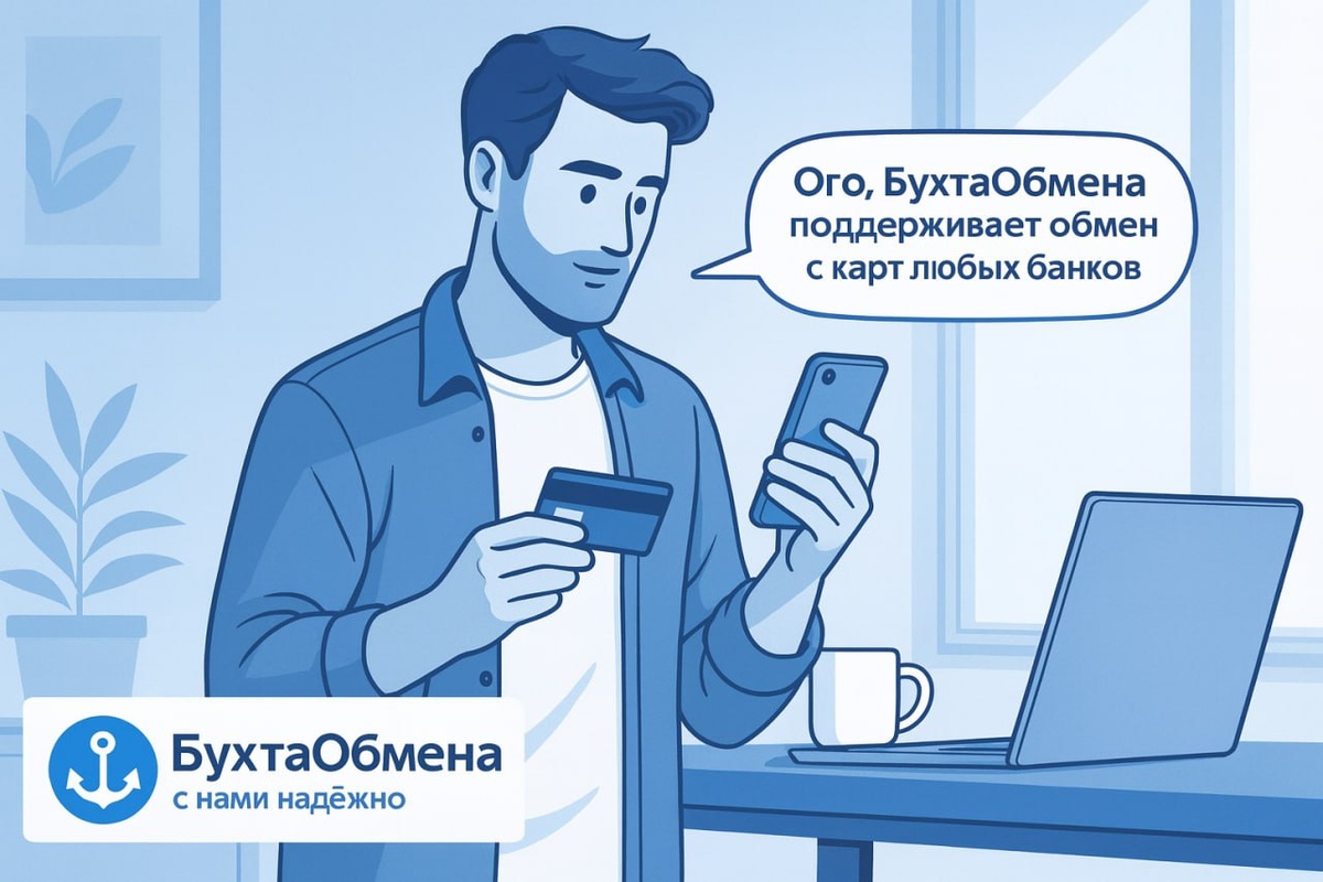 БухтаОбмена принимает карты всех банков РФ и переводы через СБП.