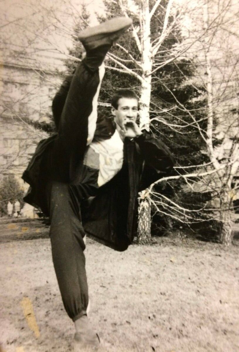 На фото я, не сомневайтесь, в братовской большеватой мне тогда кожанке, с цепью на дубе том и во французском мятом костюме, тогда модно было, конечно, брат все подарил❤.