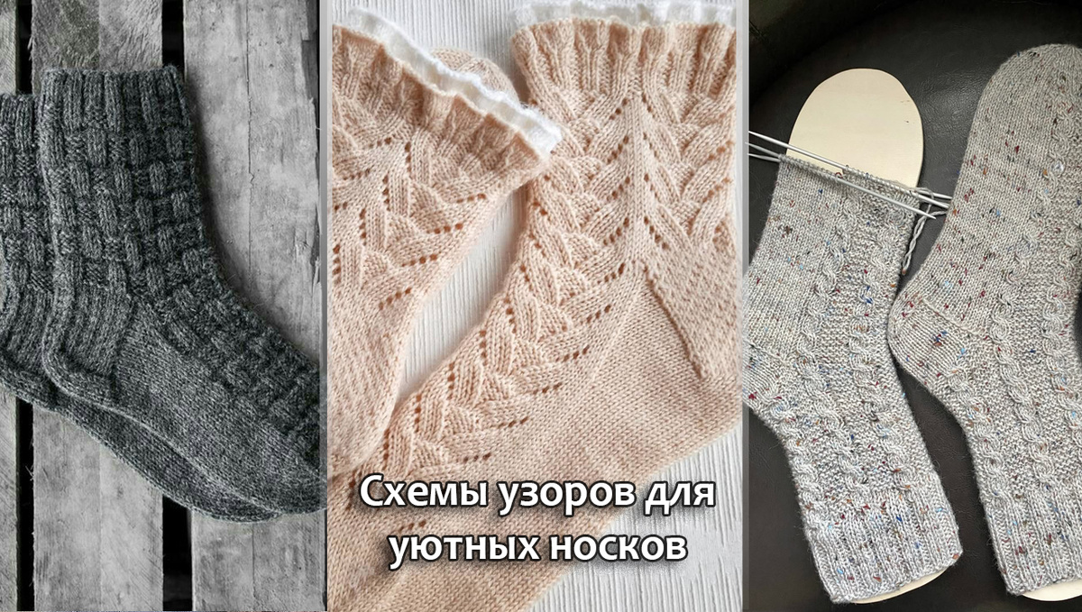 Носки с узорами и без, из секционной пряжи или однотонной, толстенькие или тонкие, которые можно носить с обувью - варианты различных вязаных носков можно перечислять бесконечно. Любителям вязать носки, реализовать такие, думаю, по силам. Однако рассмотреть носочки и подумать, как их связать, всегда интересно. О носких, связанных гладью я уже рассказывала, сегодня хочу осветить тему носков с узорами. А точнее, опубликовать несколько схем узоров, которые подойдут для носков. Не забудьте подписаться на канал и поставить лайк этой статье. На моем канале вы найдете мастер-классы, полезные статьи со схемами узоров и видео с обзором пряжи, инструментов и вязаных изделий. Ниже покажу узор, который выигрышно смотрится не только на носках. Я его применяла и для аксессуаров, и для плечевых изделий. Однако посмотрите, как изящно с ним смотрятся носки. Мне нравится, когда ажур на носках умеренный, он лишь создает визуальную легкость полотну, однако небольшое количество "дырочек" не уменьшает плотн