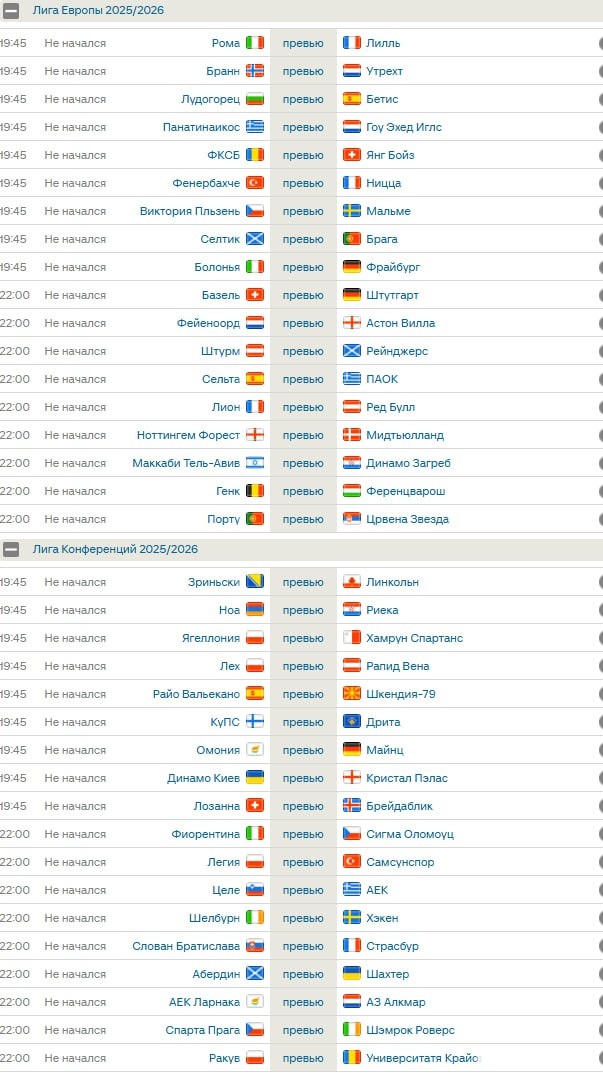 Матчи 🇪🇺 ЛЕ и 🇪🇺 ЛК, которые ожидают нас вечером