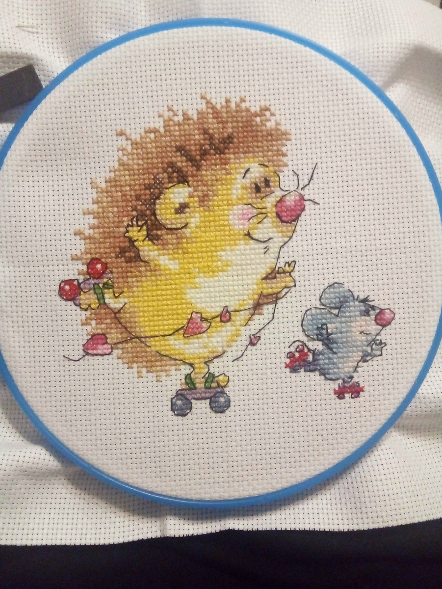 Я дошила ежа! Не знаю, почему, вышивание как-то плохо идёт. Буквально заставляю себя ковырять по 100 крестиков. Может, конкретно этот набор не очень порадовал по проработке. А вообще такое бывает, что просто руки не идут. Стараюсь или отложить вышивку, или ковырять хоть по сколько, если пауза затягивается. Это ранний набор от "Чудесной иглы", бэк вообще жуткий. Но довольно миленько вышло))) Кстати, весной прочитала, что ёж в вышивальных приметах считается существом, который ходит и по земле, и в корнях деревьев, и вообще, где хочет. И тем самым договаривается и разруливает проблемы)) А когда я это узнала, у меня очень серьёзные проблемы и дела были. И я вышивала ежа. И он по мелочи что-то разруливал))) Так что запасла наборчиков с ежами. Чтоб они всё разруливали)) Конкретно этот за меня договорился, не могла его не дошить. Снова взялась печь, в основном, по мелочи. Из крупных форм - яблочные пироги. Периодически хочется какого-нибудь печеньевого марафона. Вспомнила советские печенюш