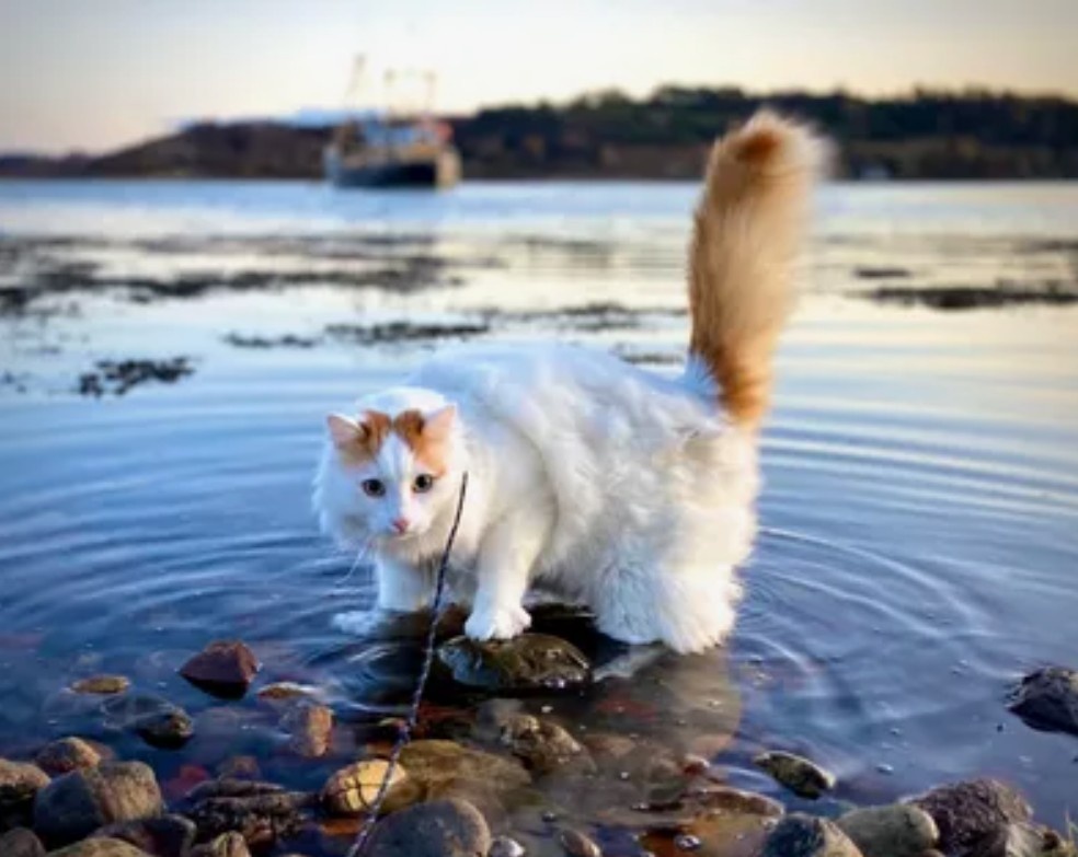 Европейские туристы в середине прошлого века с изумлением наблюдали, как целые кошачьи семейства резвятся в волнах. Так порода кошек турецкий ван и получила своё имя.