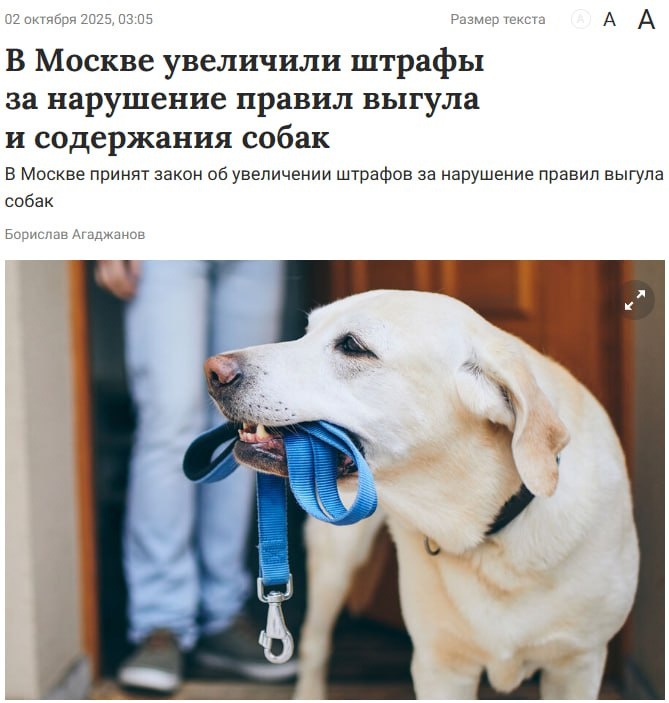 ⏺В Москве ужесточили штрафы за нарушение правил выгула животных
