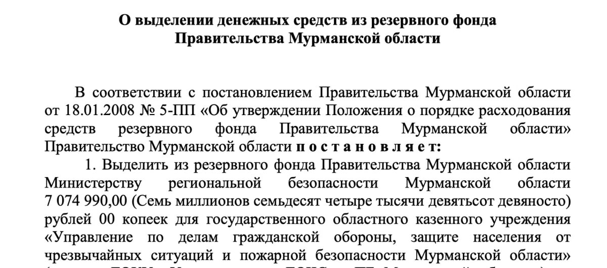 Правительство Мурманской области планирует выделить средства региональному Управлению ГО и ЧС на