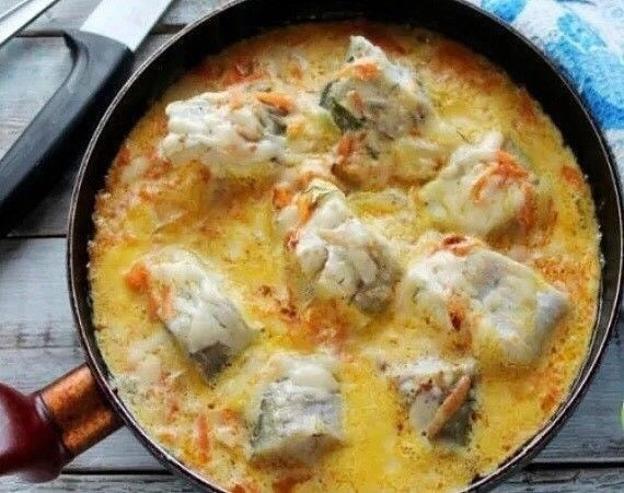 Минтай в сметанном соусе Достойный домашний рецепт. Приготовьте это блюдо к ужину! ИНГРЕДИЕНТЫ; Минтай 1 кг