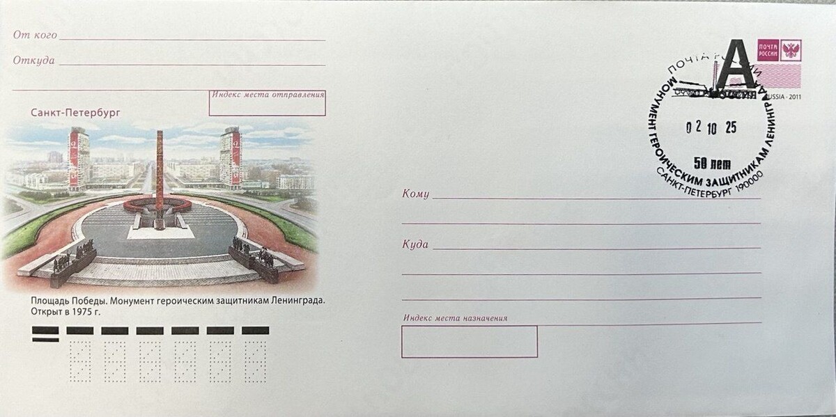 На конверте, выпущенном тиражом 50 000 экземпляров, изображена фотография монумента и нанесена надпись: «Площадь Победы. Монумент героическим защитникам Ленинграда. Открыт в 1975 году». Конверты уже поступили в почтовые отделения Санкт-Петербурга и Ленинградской области.