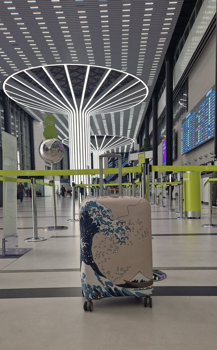 И в завершение.... Истории про то, как мне в авиаперелете разбили чемодан, какую компенсацию за него получил и как сам этот чемодан отремонтировал я рассказывал в двух статьях, ссылки на них приведены ниже. Ну что сказать? Чемодан мной отремонтирован. Необходимо проверить его в реальном перелете, в условиях реальной эксплуатации и оценить как отремонтированный чемодан перенесет (или не перенесет) поездку. А вдруг треснет по склееным швам при очередной погрузке (разгрузке) с транспортных лент и багажных каруселей аэропортов? Да или просто при перемещениях в путешествиях. В дорогу! Чемодан загрузили вещами, надели на него чистенький, выстиранный защитный чехол (всегда это делаю) и прикатили в аэропорт вылета. Чемодан в аэропорту вылета, готов к сдаче в багаж. По прилету в аэропорт назначения чемодан был снят с багажной ленты и осмотрен. Что сказать? На чехле появились багажные наклейки, а сам чехол стал грязным, не очень, конечно, но это всего один перелет. Уж в какой грязи чемодан "в