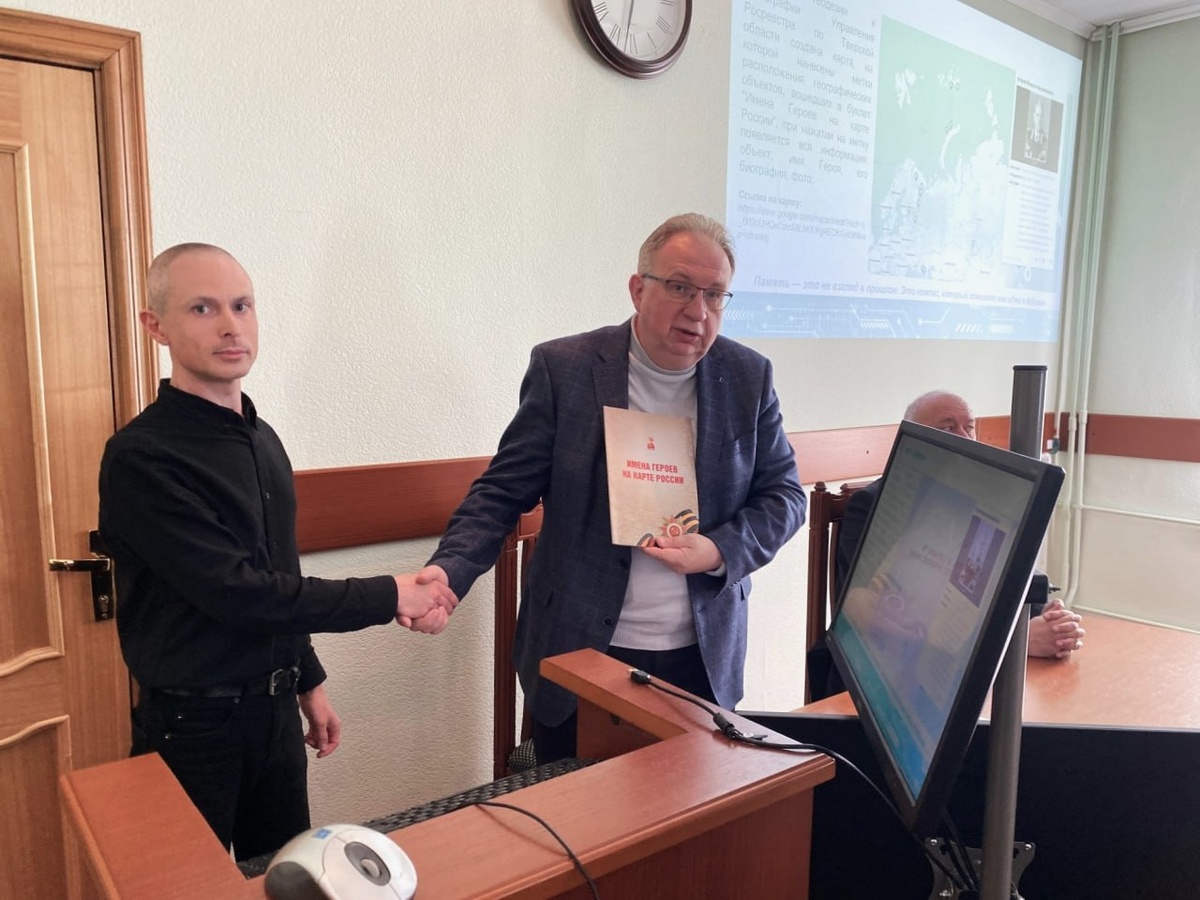 💬 Представители тверского Росреестра рассказали студентам ТвГТУ, как в России увековечивают имена героев в географических названиях 30 сентября в зале ученого совета Тверского государственного технического университета состоялась открытая лекция «Имена героев на карте России: как память становится географией», которую провели представители Управления Росреестра по Тверской области. С вступительным словом выступил врио ректора ТвГТУ Алексей Анатольевич Артемьев, который отметил важность и актуальность рассматриваемых вопросов. Затем был представлен доклад главного специалиста-эксперта отдела геодезии и картографии тверского Росреестра Семена Игоревича Шаврина. Слушателями стали сотрудники тверского Росреестра и ТвГТУ, студенты 2, 3 и 4 курсов инженерно-строительного факультета направлений «Землеустройство и кадастры», «Управление жизненным циклом объектов недвижимости». В лекции были освещены вопросы увековечения имен героев в географических названиях, в том числе в Тверской области